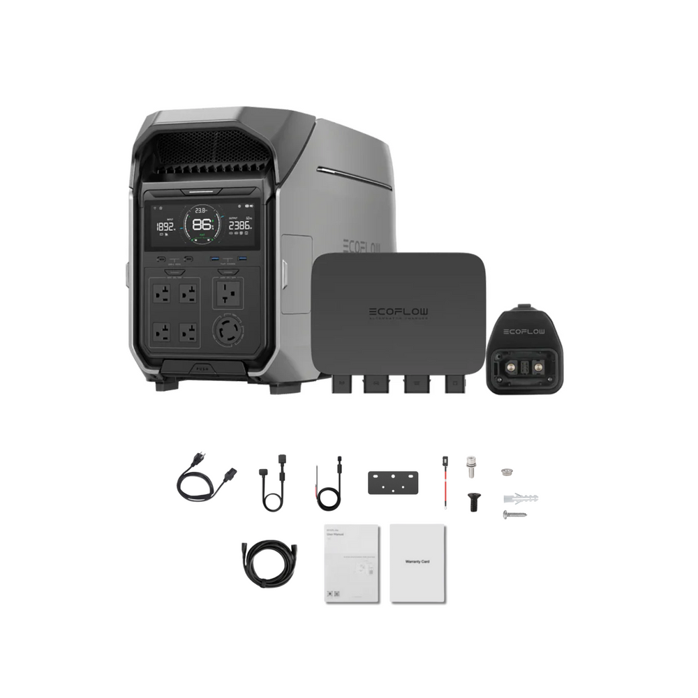 The DELTA Pro 3 Road Kit equips you with everything you need to keep your gear powered up, no matter where your journey takes you. This ultimate off-grid companion combines the industry-leading EcoFlow DELTA Pro 3 Portable Power Station with the 800W Alternator Charger and the DELTA Pro to Smart Generator Adapter, giving you unmatched versatility and control over your power source.
