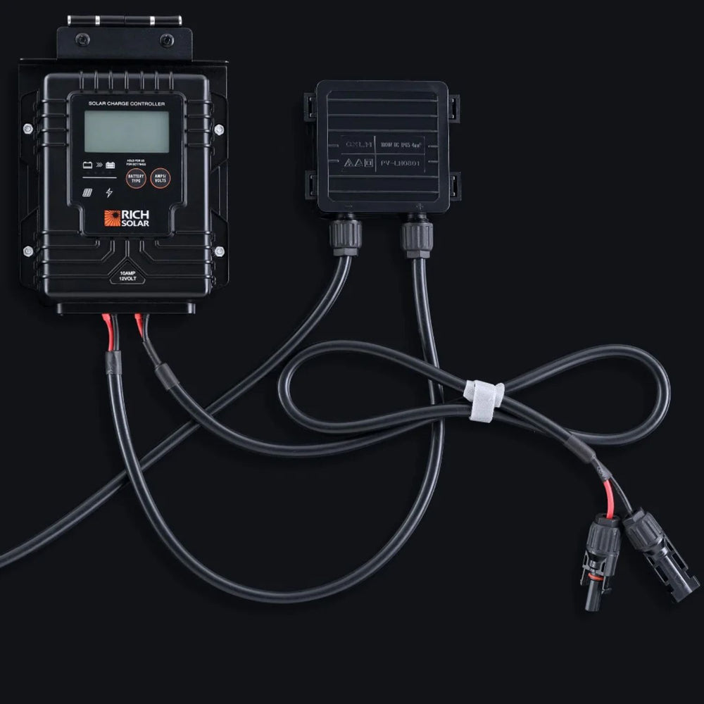 Includes a waterproof 20A PWM charge controller that protects batteries. It prevents overcharging, short circuits, and voltage issues. Ensuring safe, efficient charging for lithium, AGM, GEL, and flooded batteries, it extends your battery’s life and keeps power stable.