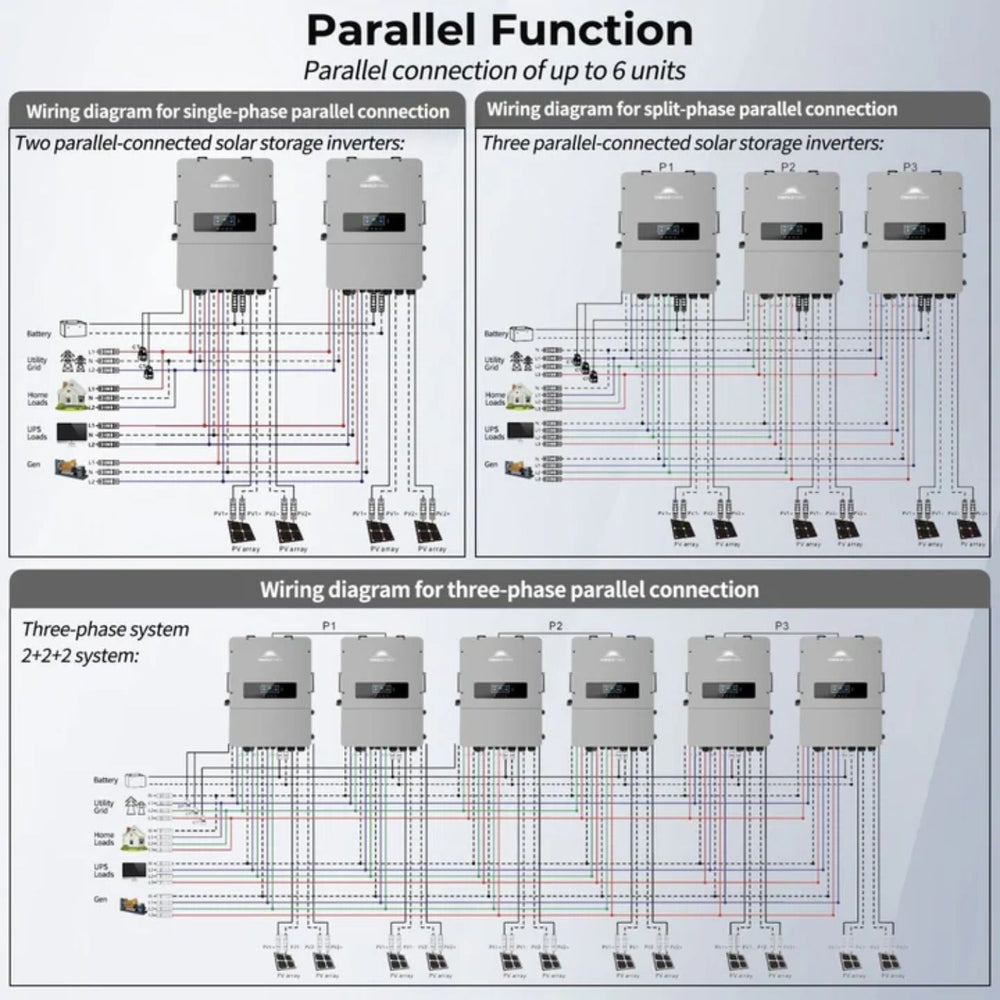 With IP65 protection, this inverter is perfect for outdoor use. Support for six parallel units lets you increase power capacity as needed. Its sturdy design ensures long-lasting performance, reliable operation, and peace of mind in all weather conditions.